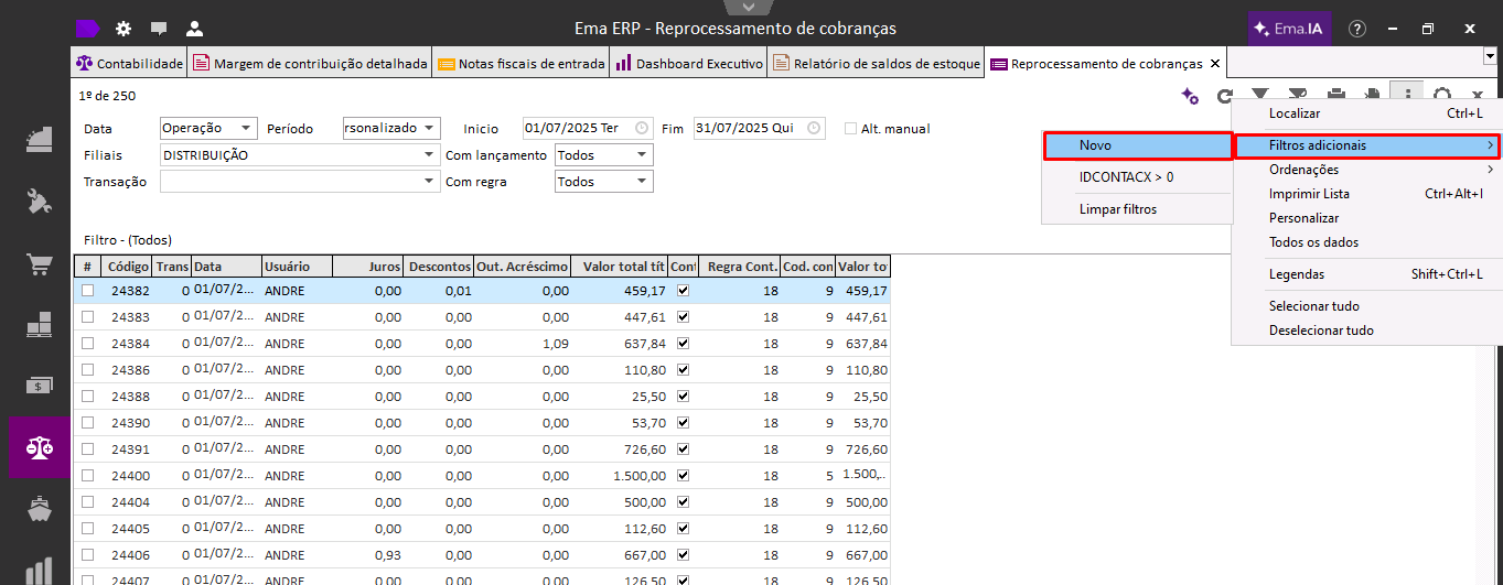 - ERP EMA: Contabilidade - Reprocessamentos - Cobranças