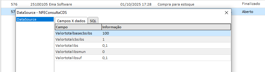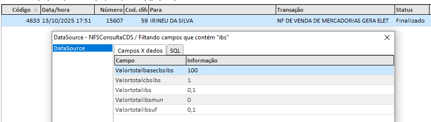 Ao consultar todos os dados da NFS [CTRL + SHIFT + D], os seguintes campos estarão disponíveis:
