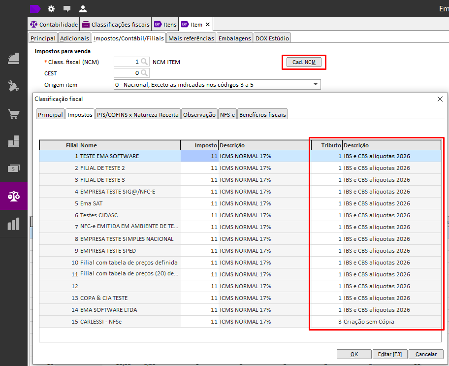 Com a adequação à Reforma Tributária, o cadastro de Classificações Fiscais (NCM) foi atualizado para contemplar os novos tributos CBS e IBS.